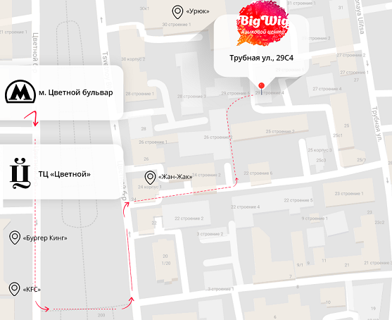 Языковой центр BigWig находится в центре Москвы. К нам можно легко добраться из любого района!
